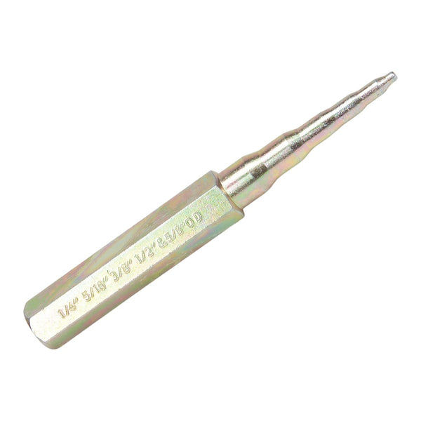 Heat-treated 5-in-1 punch tool swages 1/4", 5/16", 3/8", 1/2", and 5/8" O.D. copper tubing for fast, precise HVAC connections.